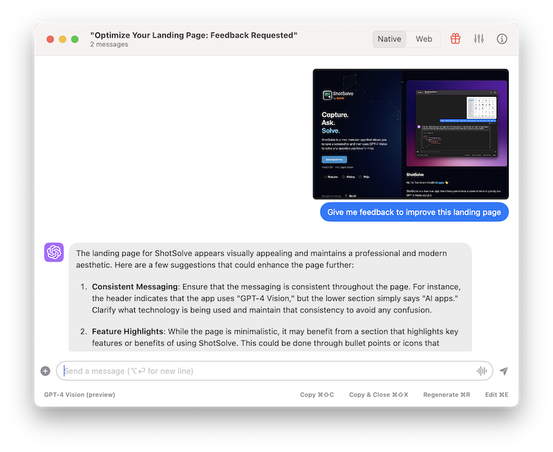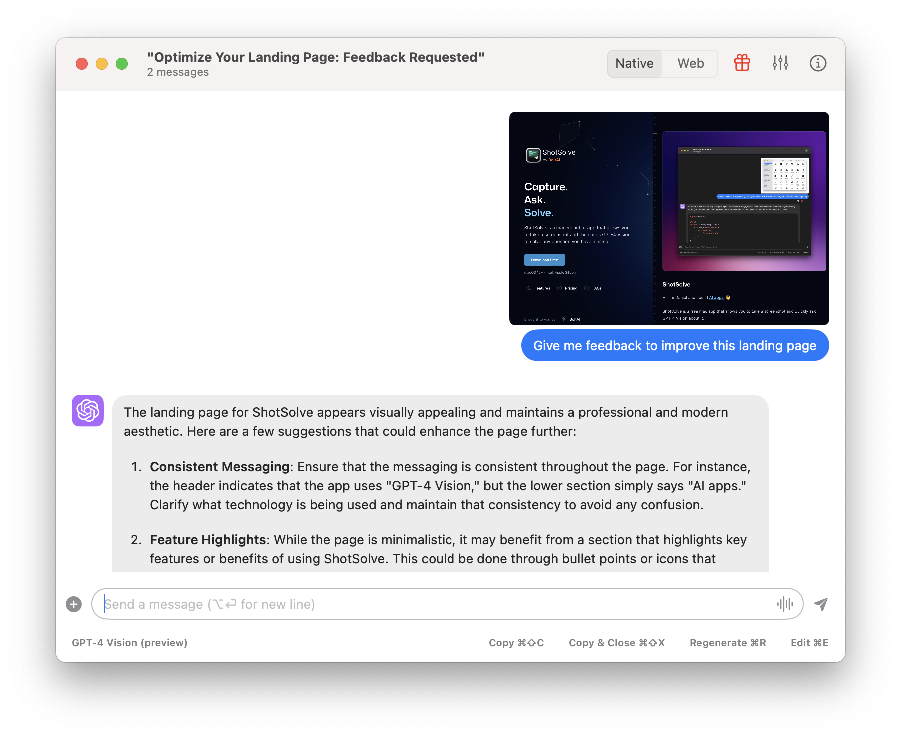ShotSolve is a free mac app that allows you to take a screenshot and quickly ask GPT-4o about it.